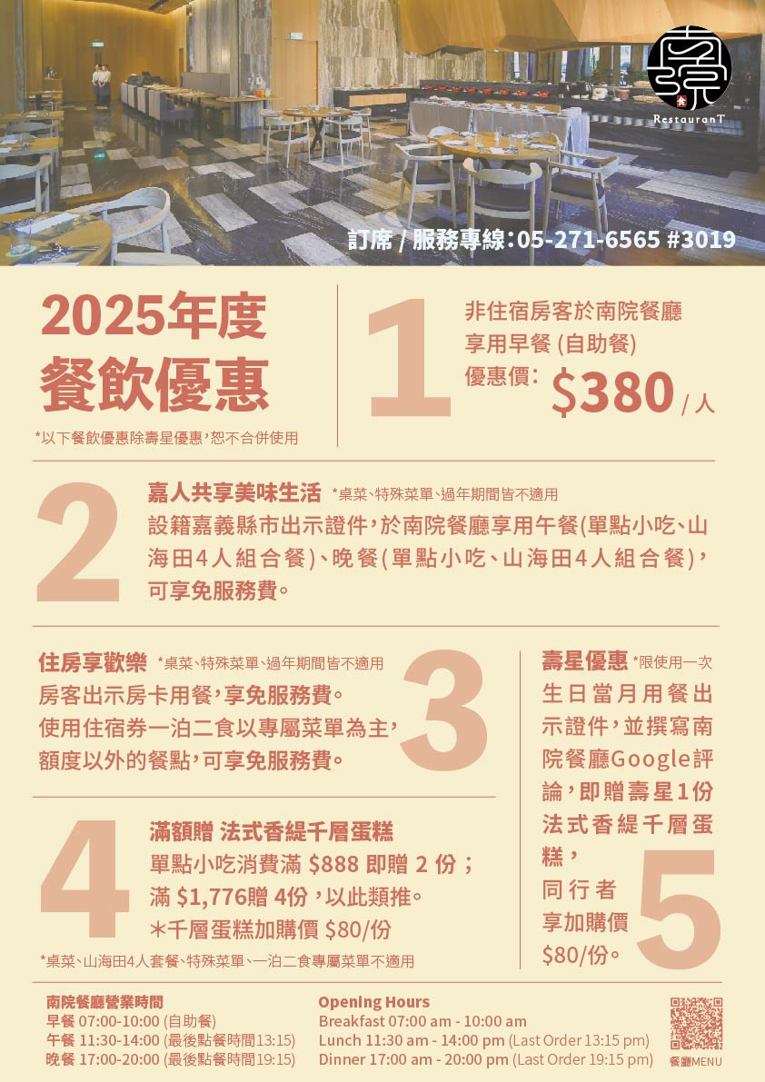 設籍嘉義縣市出示證件,於南院餐廳享用